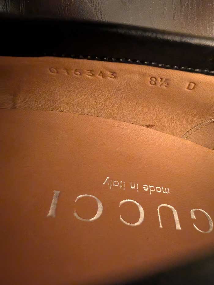 In my Facebook Marketplace listing, I made sure to include at least ten high resolution photos of the shoes, including the Gucci box, the shoe bag covers, the interior of the shoe with the model number and size etched into the leather, and images of top, bottom and sides of the shoes. The Gucci 016343 model are Black Suede Horsebit Loafers. There should have been little to no question that these were authentic